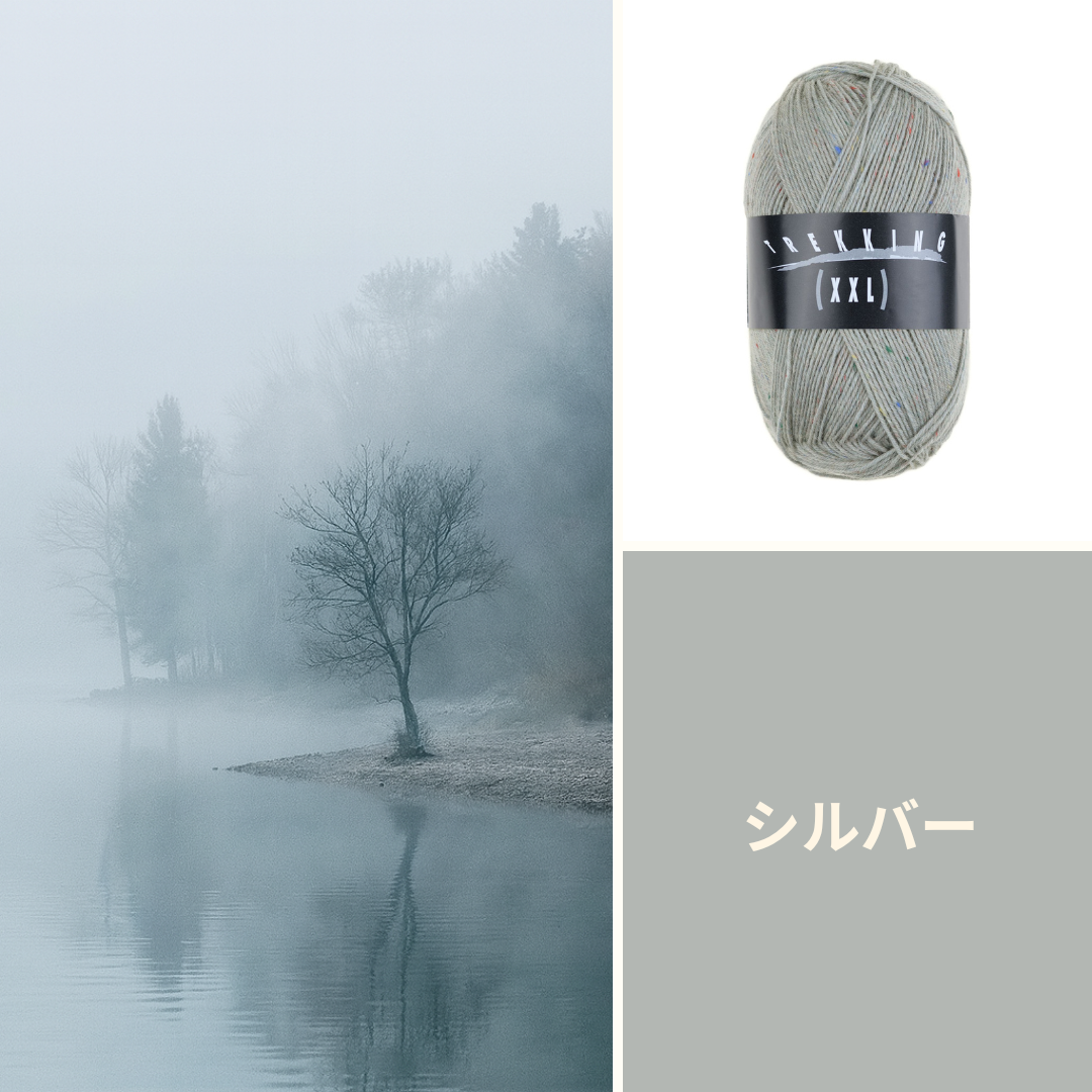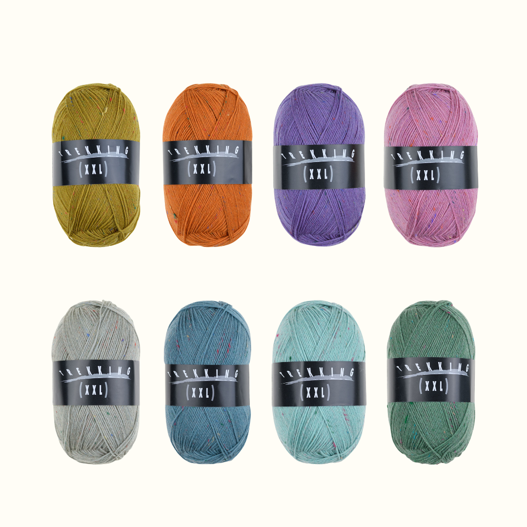 アトリエ ツィトロン トレッキング XXL ツイードは、数あるソックヤーンの中でもひときわ珍しい色彩を持つ糸です。渋さ一辺倒の従来のツイード毛糸の常識を覆し、明るさと深みを併せ持った色合いが、作品全体に新しい息吹を与えます。