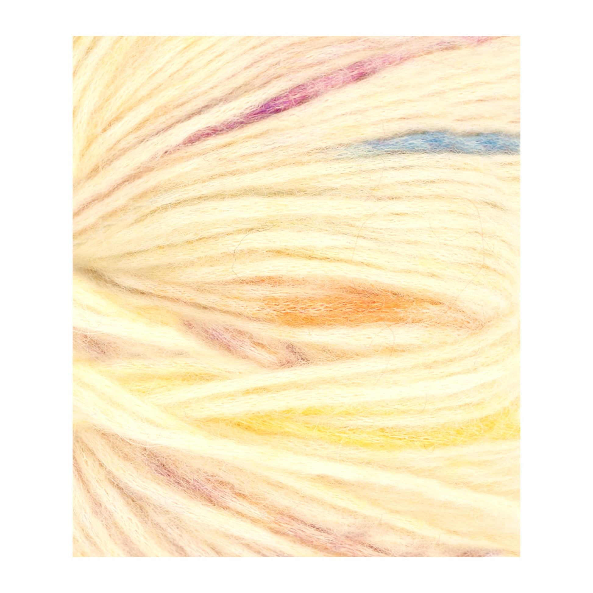 「ポピー」は、アルパカとウールの繊維をコットンチューブに吹き込む独自製法で作られています。これにより空気を含んだ編み地が生まれ、見た目はふんわり、手に取ると驚くほど軽やか。さらに、コットンの芯があることで毛糸自体の強度も十分に確保されています。